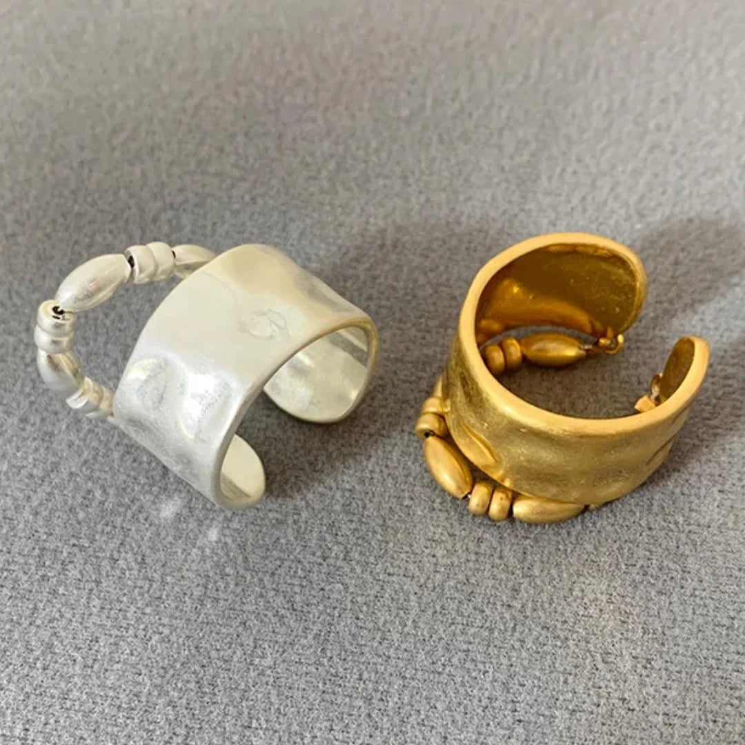 French design double layer irregular personality adjustable ring Ring wide face beaded open ring